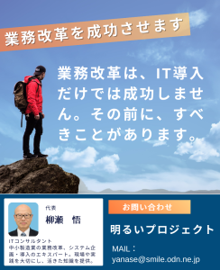 【事業内容】:明るいプロジェクト(中小製造業の業務改革を成功させるITコンサルティング)